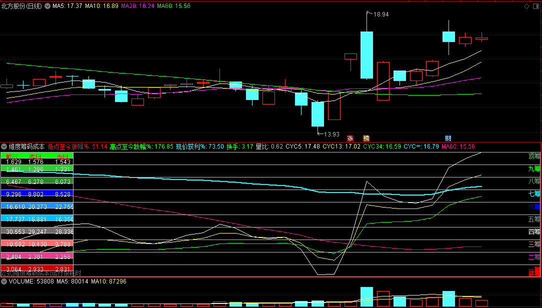 〖维度筹码成本〗副图指标 底部筹码建仓 顶部筹码出货 通达信 源码