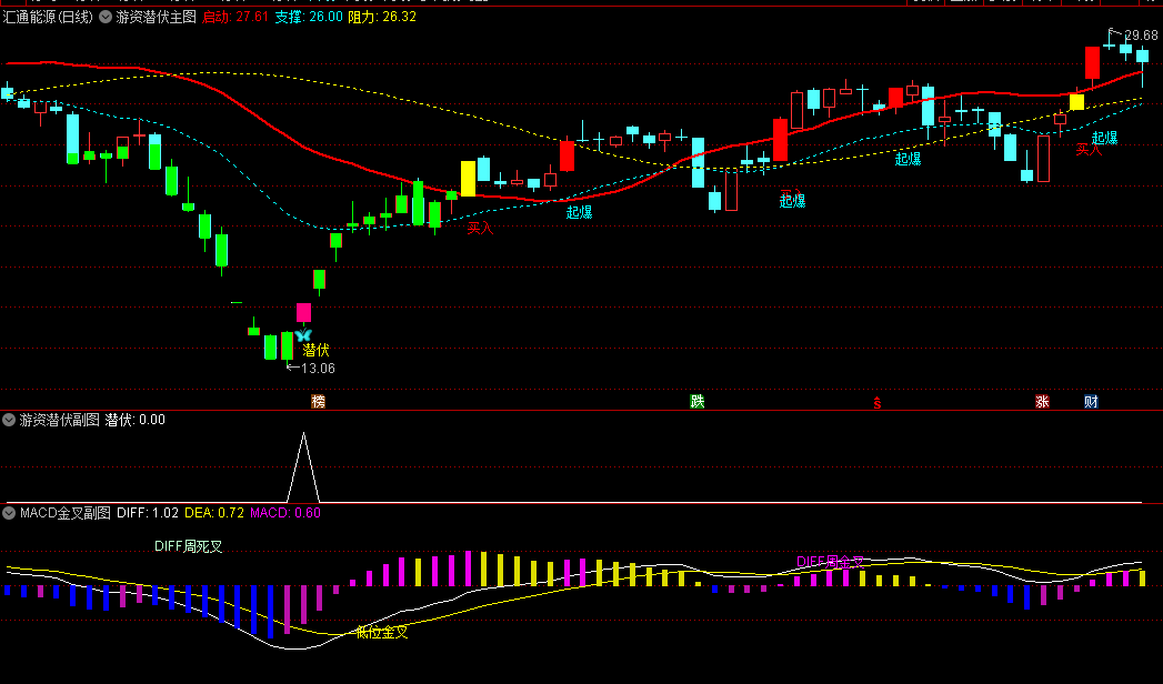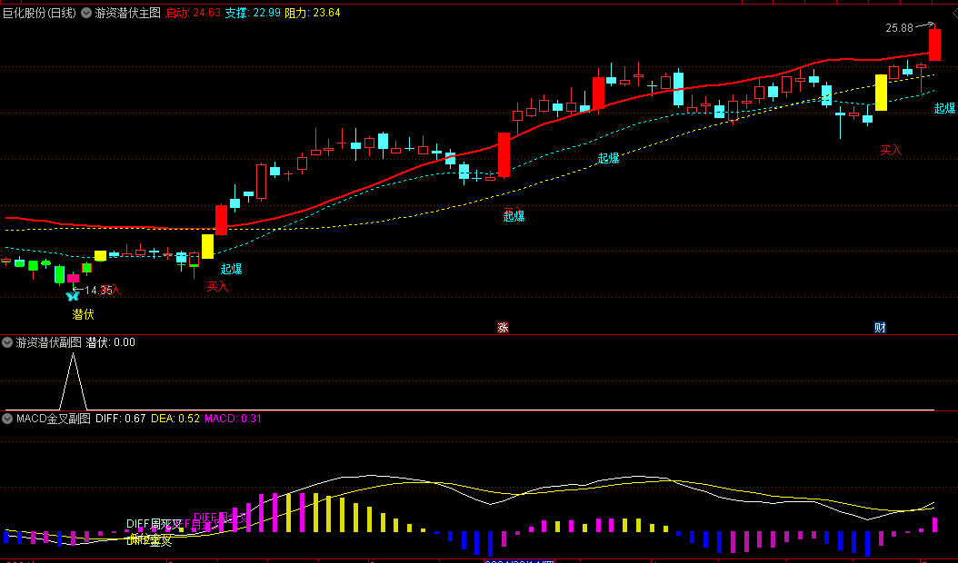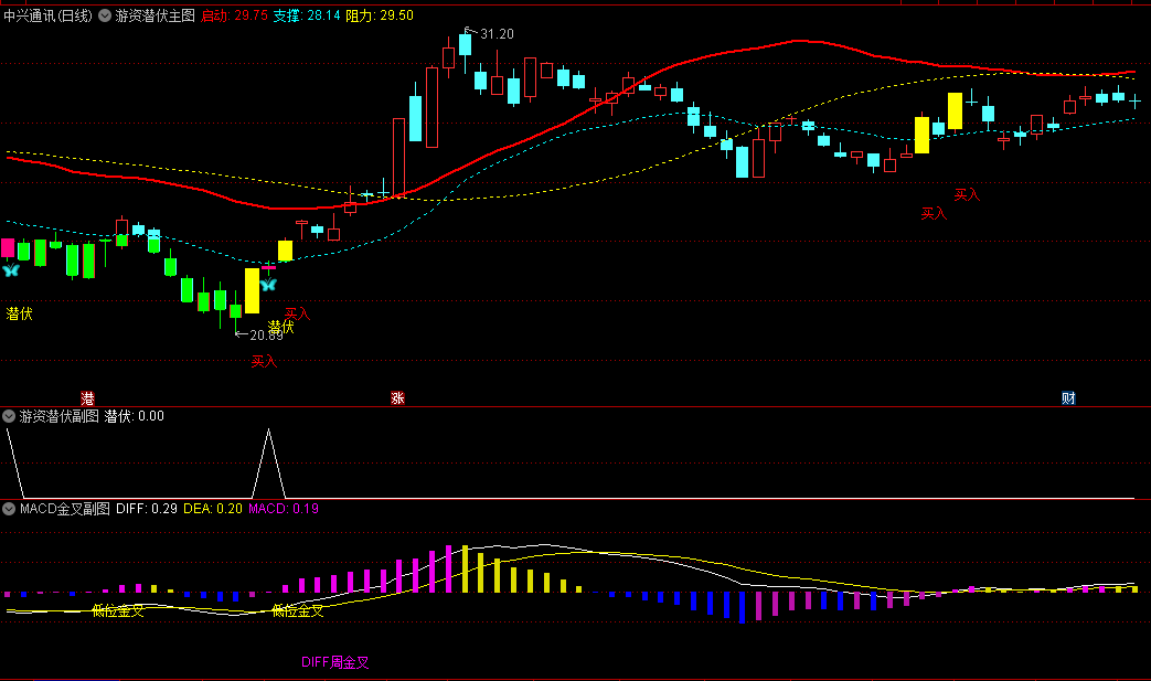 但是游资也有潜伏失败的时候,所以,终极加仓买点是主图指标,副图指标和K线出现共振的时候。
