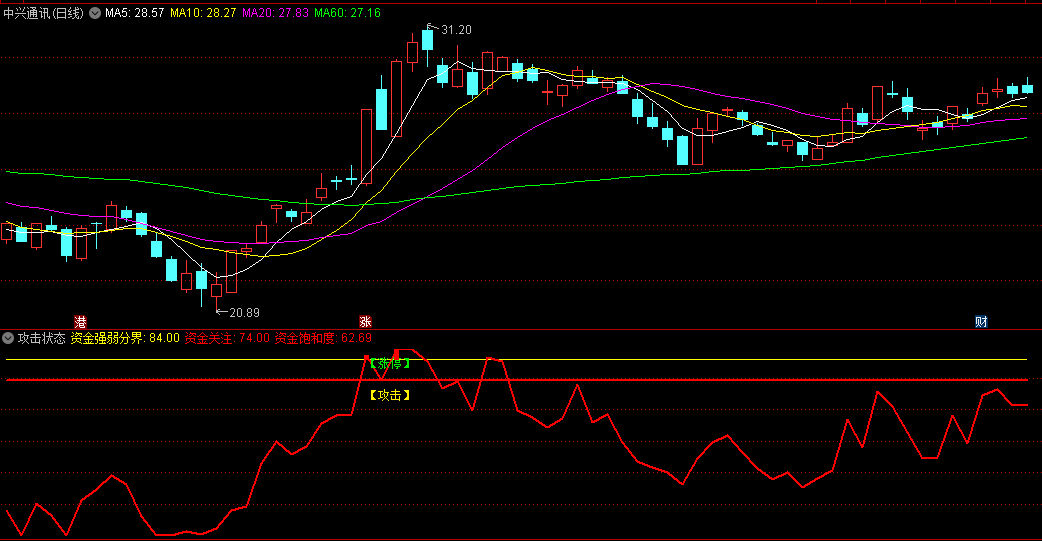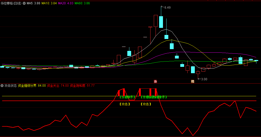 为了更直观地展示资金的强弱、关注度和饱和度,我们特别设计了一款通达信攻击状态副图指标。
