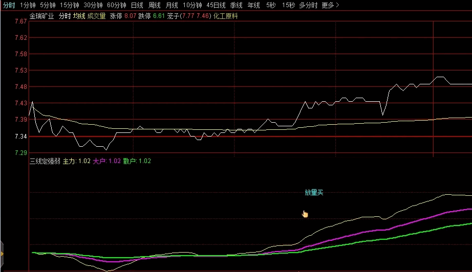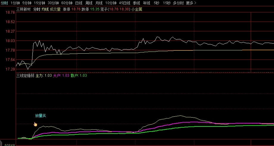 〖分时三线定强弱〗精品分时副图指标 抓板高抛低吸神器 非常好用的分时辅助指标 通达信 源码
