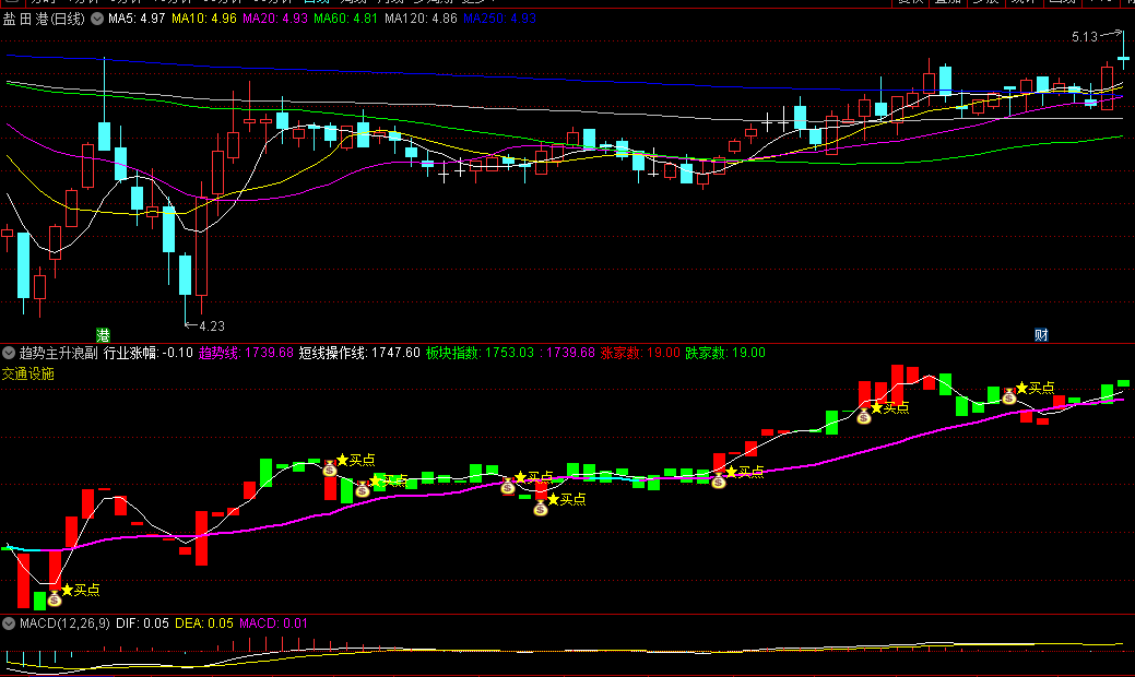 关注钱袋子信号:在主升浪的启动阶段,指标会发出“钱袋子”信号。这个信号通常出现在中阳线或以上的K线图上。投资者可以在当天或次日考虑买入股票,以抓住主升浪的机会。