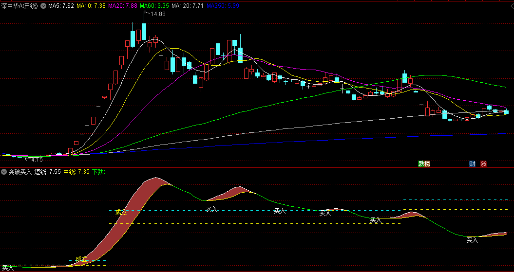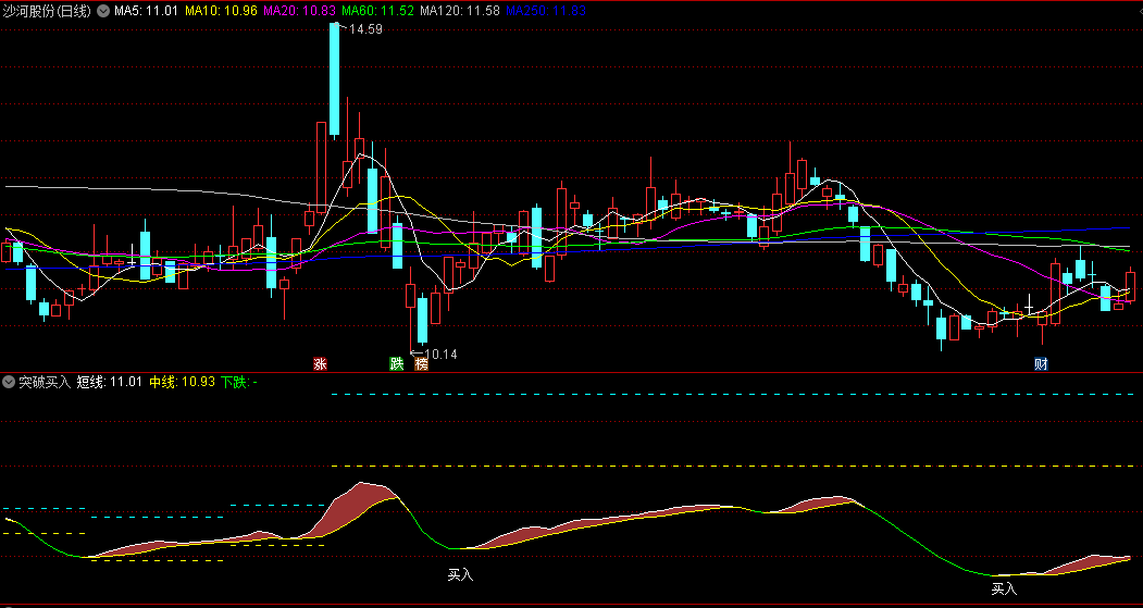 修正版〖突破买入〗副图指标 利用均线确定趋势 只做上升趋势的行情 通达信 源码