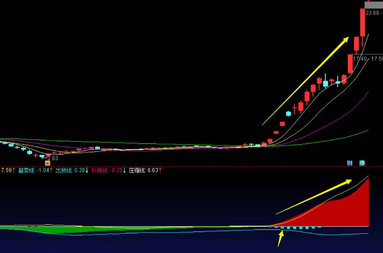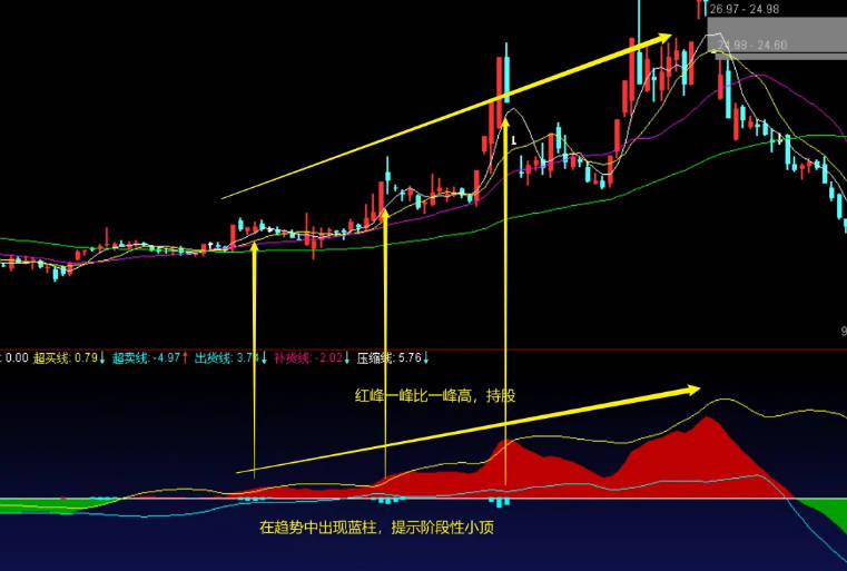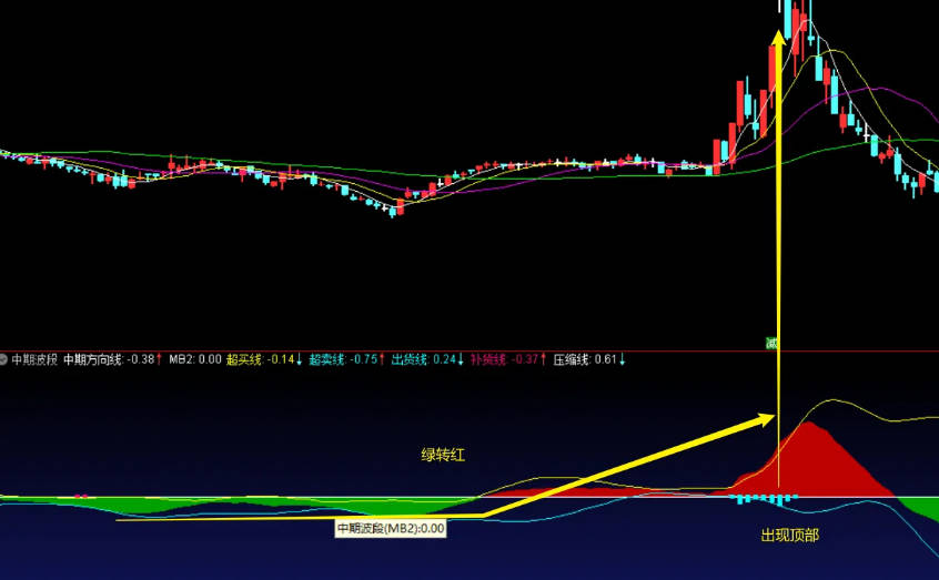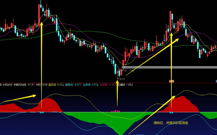 提示中期行情,适合一波下跌后的转势,并提示阶段性的顶底,再结合短线指标可以吃到大肉。