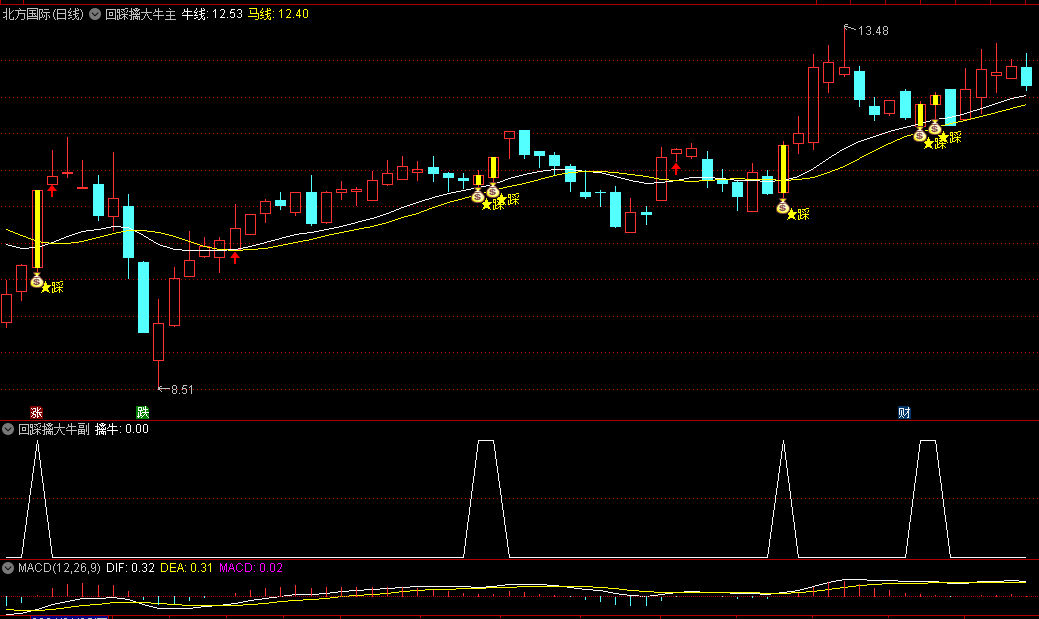 通达信【回踩擒大牛】主图/副图/选股指标,趋势跟踪+精确买入信号识别,准确地把握买入时机