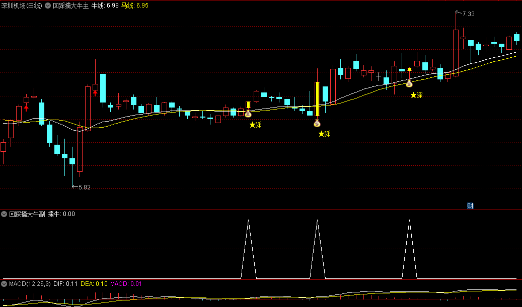 指标关注K线回踩“牛线”的位置,或者关注K线与“牛马线”之间的关系。当股价回调至“牛线”附近并获得支撑时,这可能是一个良好的入场机会。这种回踩行为通常意味着市场在经过一段上涨后的正常调整,是股价继续上涨前的蓄势阶段。