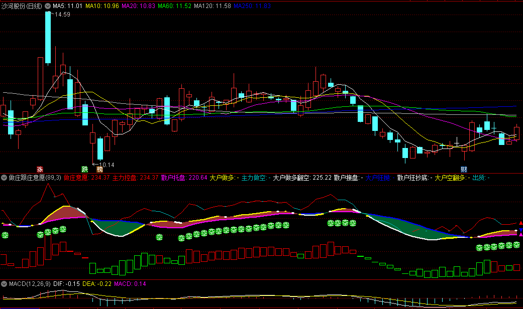 意义:代表金牌主力在进行打压洗盘或顺势出货。
