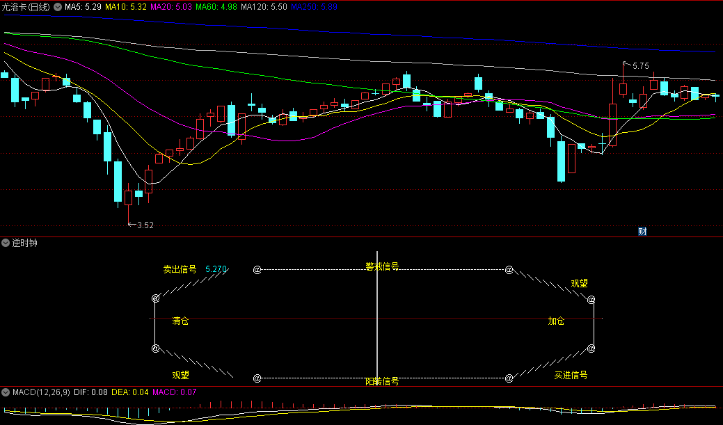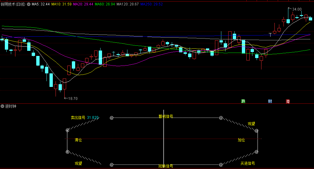 在构思这个指标的过程中,花费了几天的时间,希望通过不断的努力和实践,使逆时钟副图指标更好地服务于广大投资者。