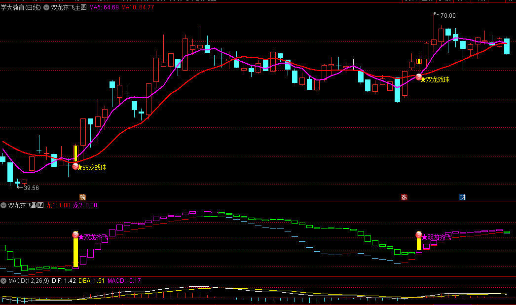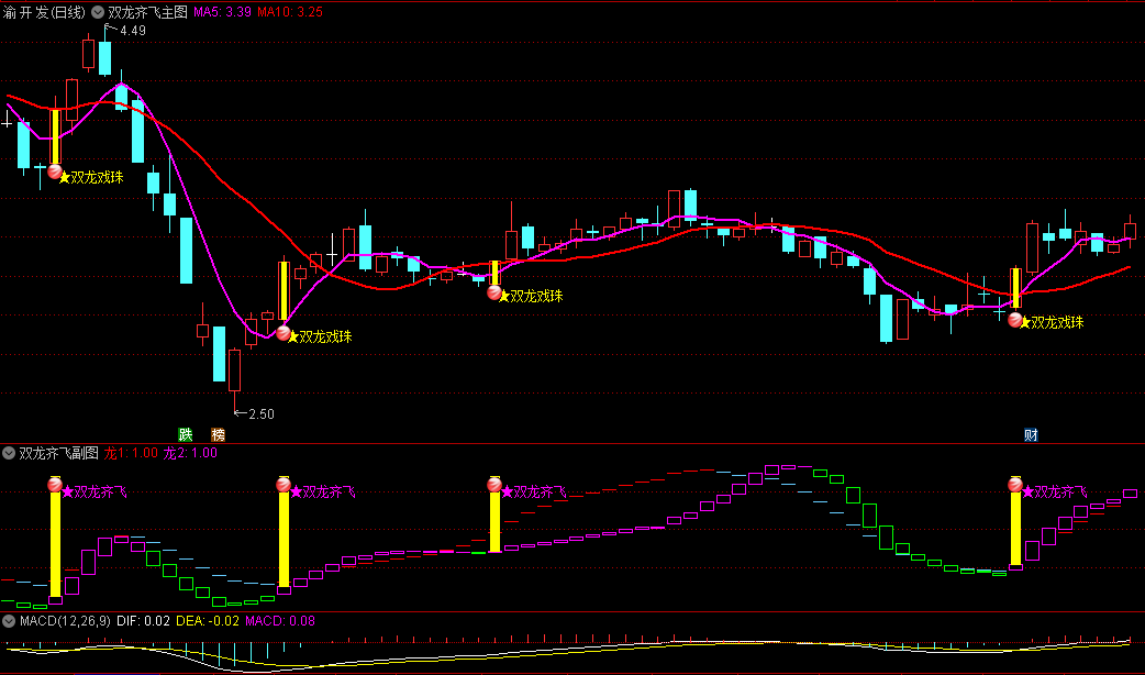 通达信双龙齐飞指标是一套专注于波段操作的实战指标,它将两个副图指标巧妙地结合在一起,为投资者提供了明确的买卖信号。该指标的核心在于通过判断不同颜色线段的出现和共振情况,来捕捉市场的波动趋势,从而指导投资者进行波段交易。