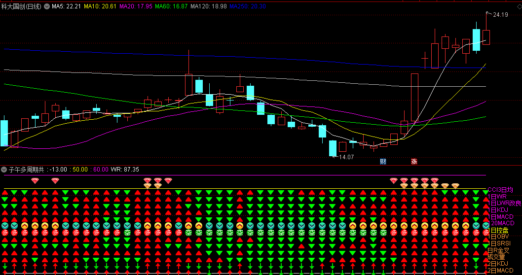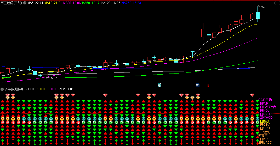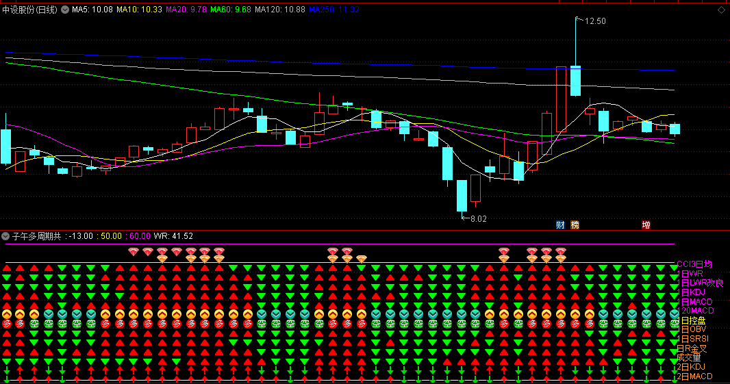 子午多周期共振基本组成就是:1日cci+1日wr+1日改良LWR+kdj1日+1日macd+120分MACD+1日控盘+1日obv+1日Srsi+KDJ2日+2日MACD,最后合起来看共振力度,源码分享,不加密码。