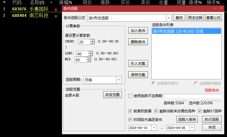 如网页7的 V型反转3:=EXIST(A2,3) AND 突破箱体,当第二个浅V冒头时: