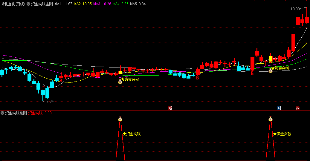 〖资金突破V02〗主图/副图/选股指标 与之前相比提高了捕捉信号的敏感度 以及去掉了未来函数 通达信 源码