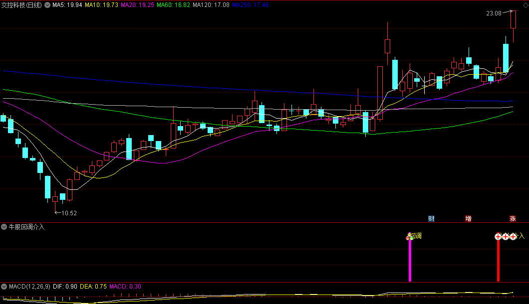 精准预警:该指标能够准确识别牛股在上涨过程中形成的回调价格洼地,并在适当时机给出买入预警。这些预警点通常具有较低的涨幅和适中的交易量,为投资者提供了良好的介入机会。
