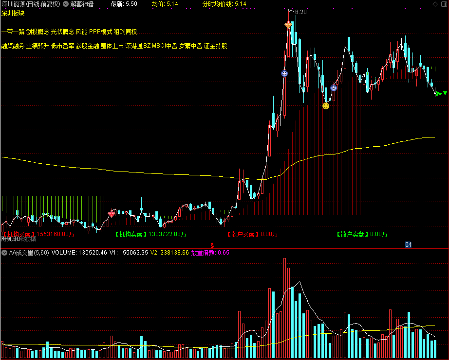 均价:SUM(C*V,240)/SUM(V,240),COLORYELLOW,LINETHICK1;