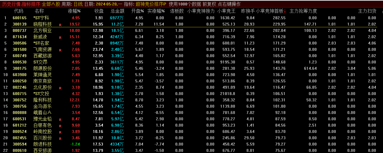 〖小草超神竞价〗排序指标 接力+首板+抢筹等和谐版 不需要DLL文件 支持所有通达信版本 通达信 源码