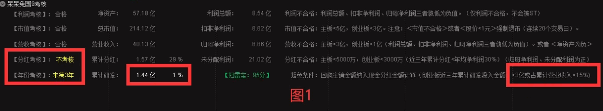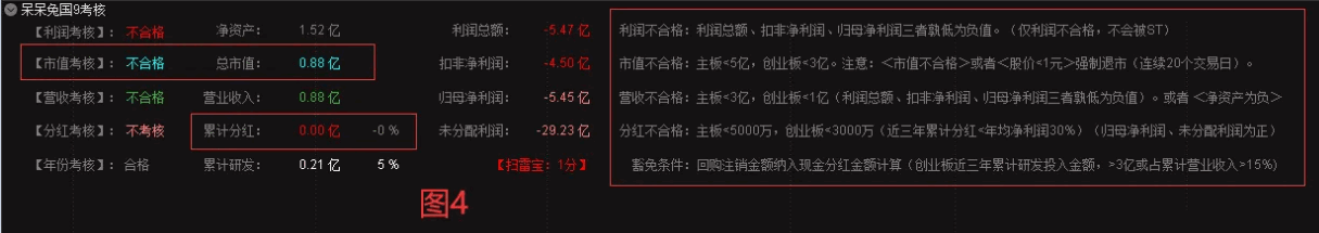 图4:市值不合格用蓝色对应,右边有国九条考核标准,一目了然。