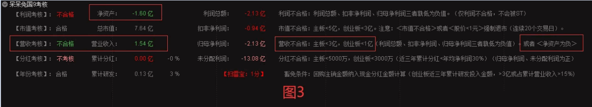 图3:净资产为负,营业收入不合格,都用绿色对应。
