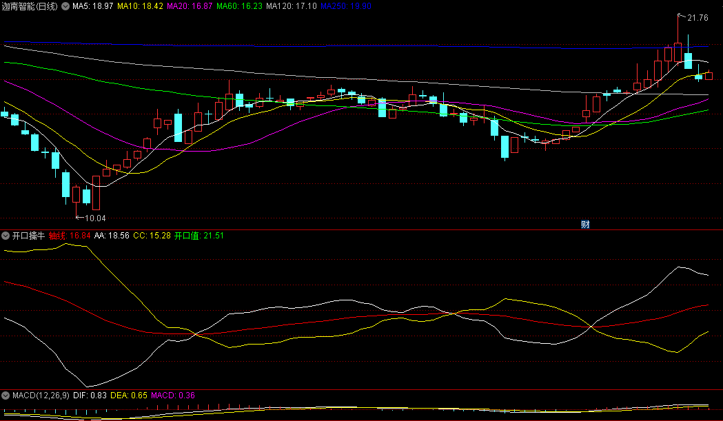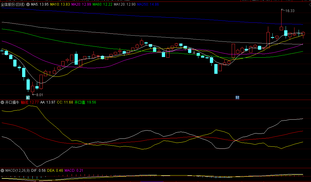 当白线上穿红线,与黄线形成一个开口时,说明将有一段上涨行情,开口越大上涨幅度越大,捕捉上涨主升浪, 擒牛股。