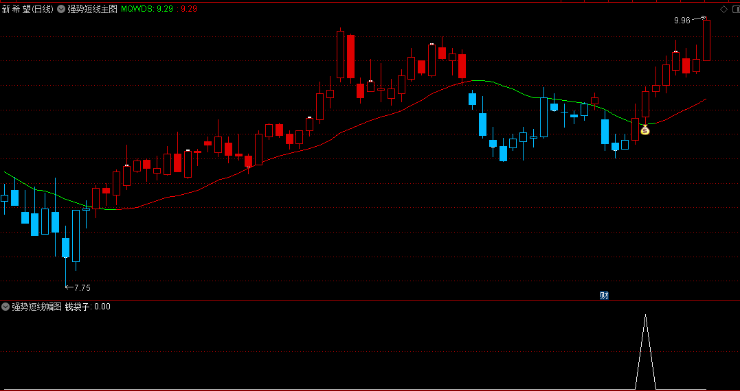 当主图指标发出“钱袋子”信号时,表示当前股票可能处于强势阶段,投资者可以重点关注这只股票的交易机会。