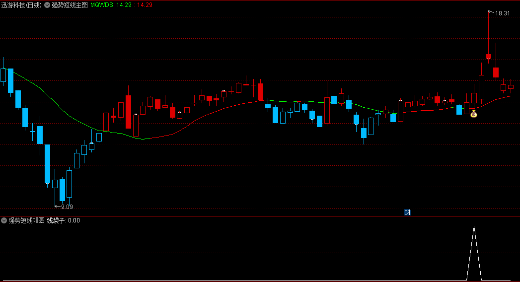 通达信强势短线主图/副图/选股指标,适合短线交易者进行交易决策,出钱袋子信号是处于强势阶段,可以重点关注!