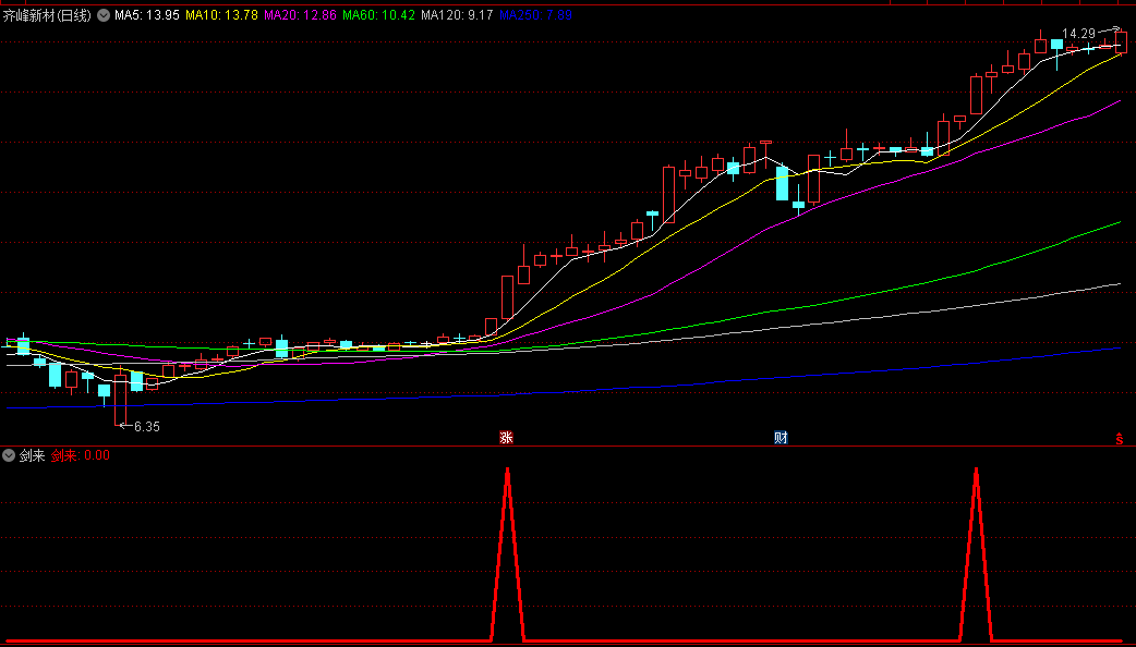 通过统计发现出信号后可以次日低开买入参考或者当天尾盘介入,针对的选股范围基本上都是属于主升浪行情的妖股。