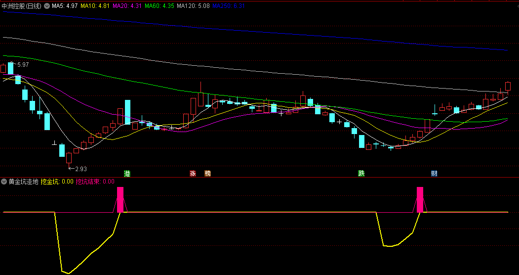 通达信【黄金坑洼地】副图和选股指标,找出具有黄金坑价值洼地的介入点,用到一个WINNER函数!
