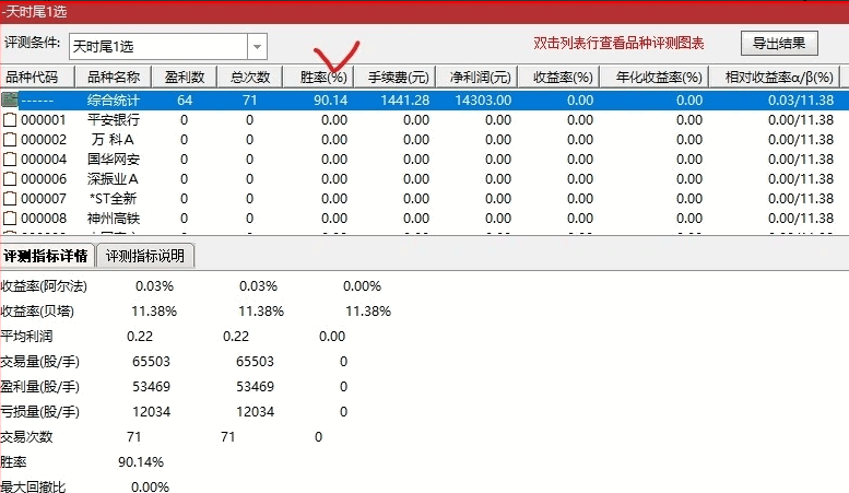 精品〖天时尾买〗副图/选股指标 带回测数据 量价尾买指标 出票少而精 通达信 源码