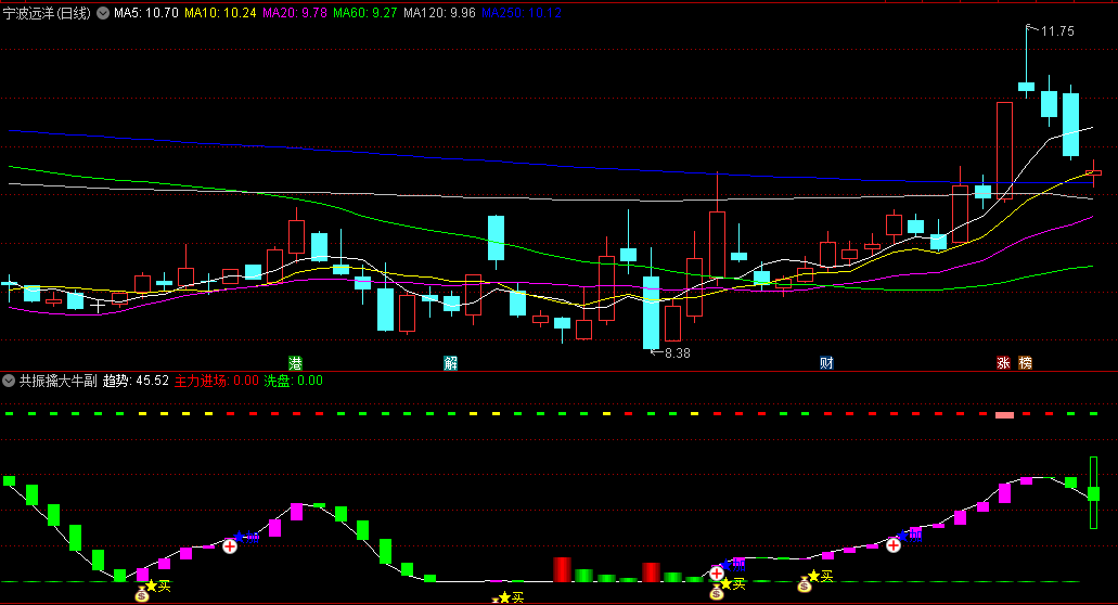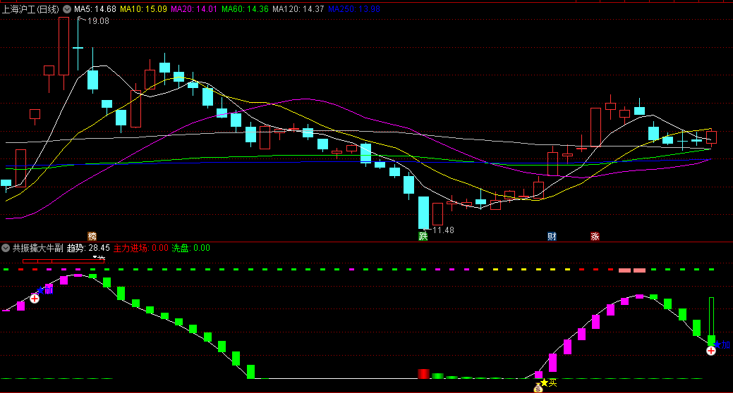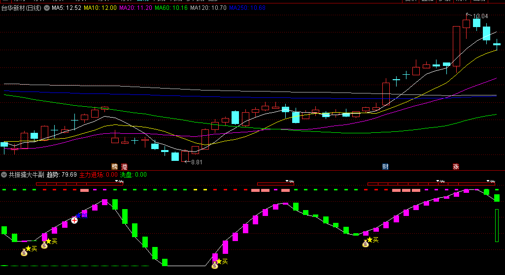“共振擒大牛”指标是一个集成了主力吸筹、趋势波段以及动力强弱的综合性分析工具,旨在帮助投资者精准地捕捉市场中的大牛股。