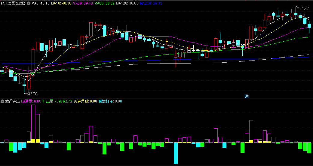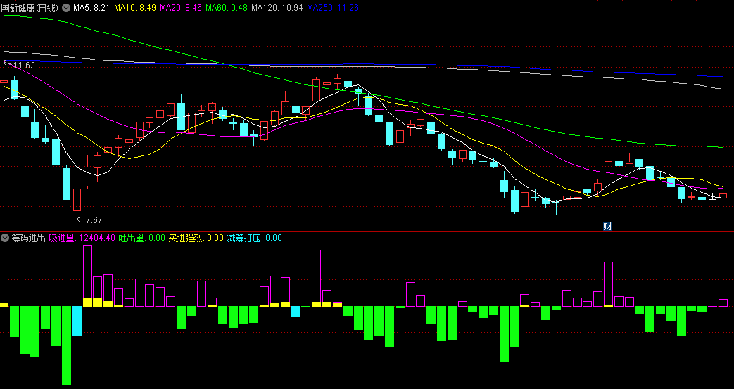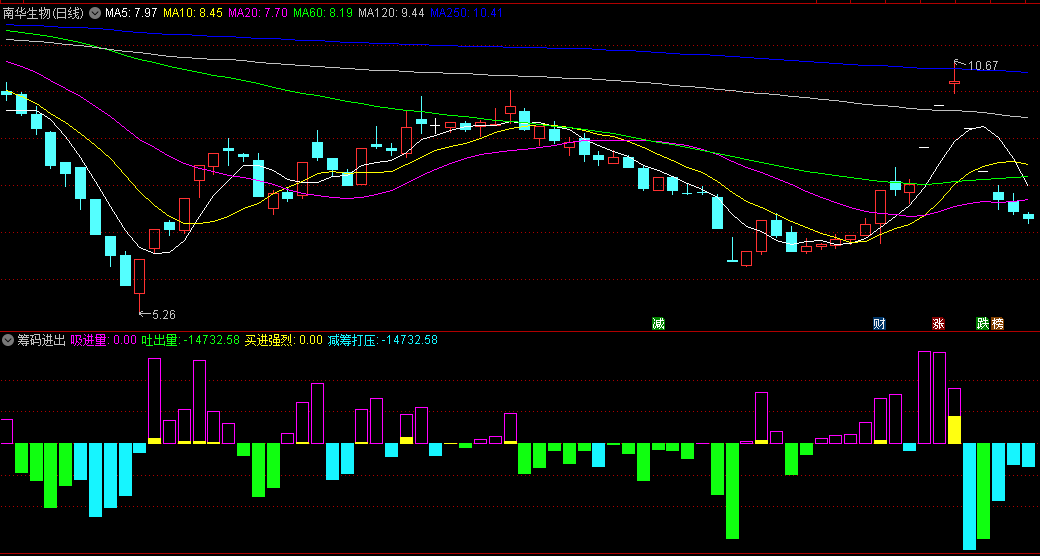 筹码进出副图指标:出现买进强烈信号时可以参考买入。
