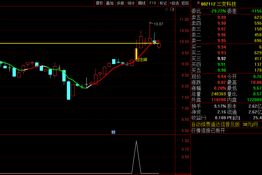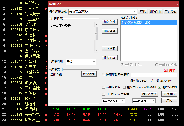在选出具有“过左峰”信号的个股后,为了进一步规避风险,投资者需要考察这些个股的前期涨幅。如果个股在发出信号前已经有了较大的涨幅(例如超过30%或50%,但具体阈值应根据当前的市场环境进行判断),那么可能意味着该股的上涨空间已经有限,此时投资者应谨慎考虑是否继续追涨,以避免高位接盘的风险。