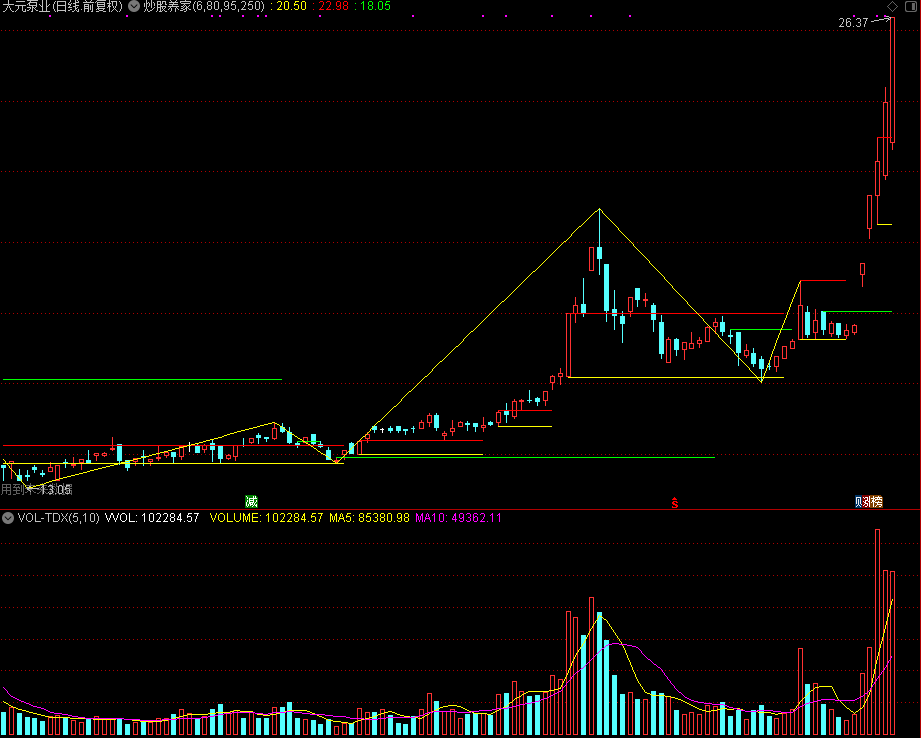 这是我自己的重点使用的主图指标,内行的看门道,比较简洁,对技术派应该有帮助,也足以让能看懂门道的人获得90%以上成功率。