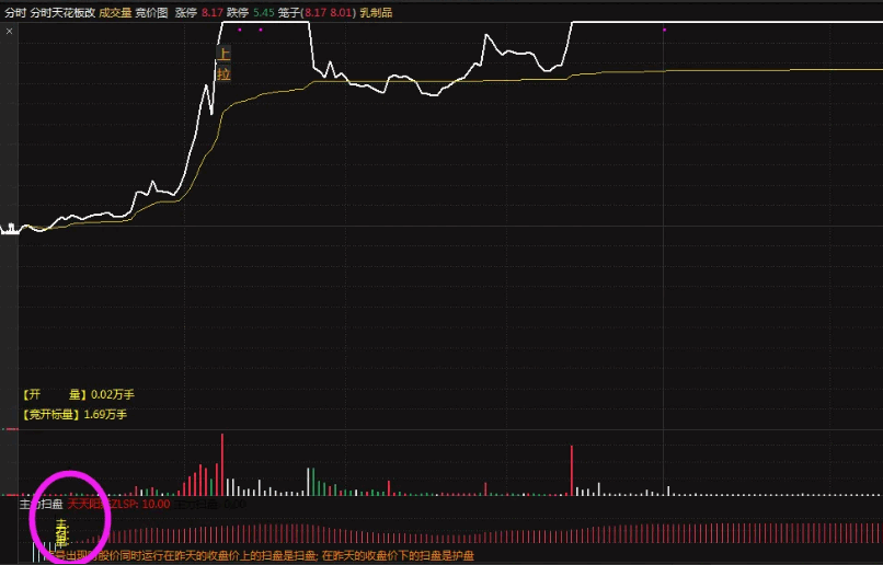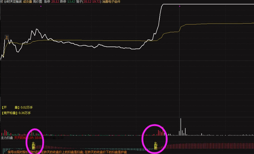 信号出现时股价同时运行在昨天的收盘价上的扫盘是扫盘;在昨天的收盘价上的扫盘是护盘,无未来函数!