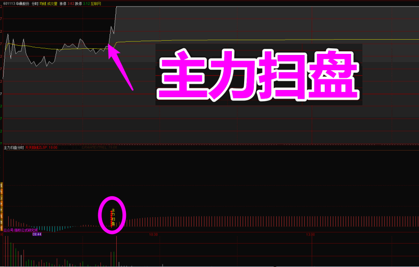 主力扫盘分时幅图,留意早盘十点前有扫盘的票,有扫盘不一定涨停, 但多少都会有几个点,能否抓到涨停就看自己了,