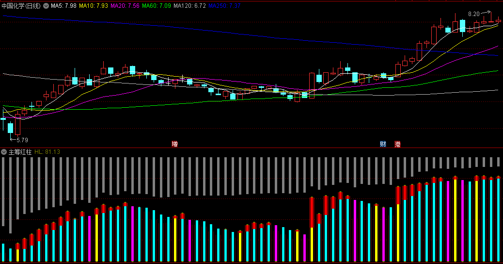 操作:灰柱最长低位尖峰,红柱最长高位尖峰。红柱持股。