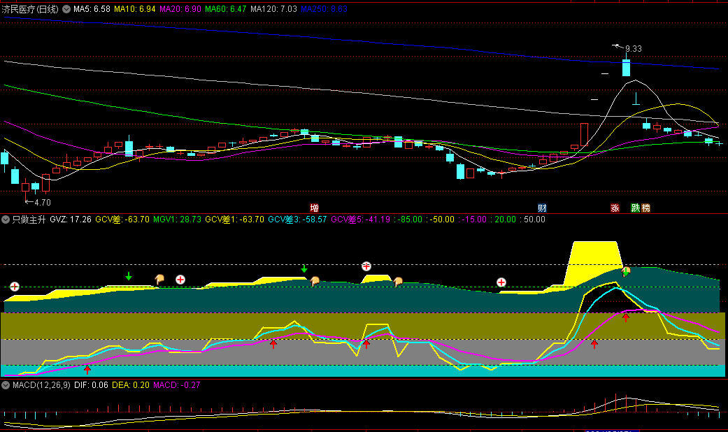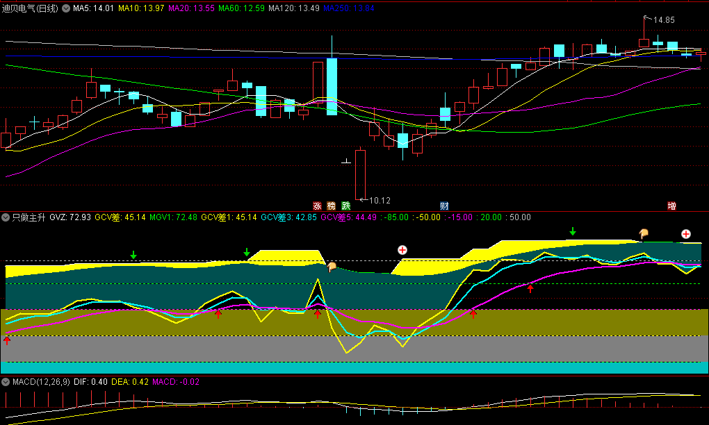 黄色部分为主升行情,红色部分为强势行情。本指标只能在通达信个版本上使用,60分钟图上能很好的抓住起始点,大家在使用时可以自己体会。