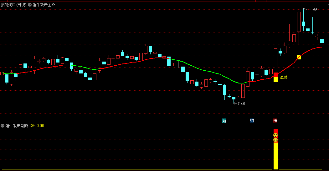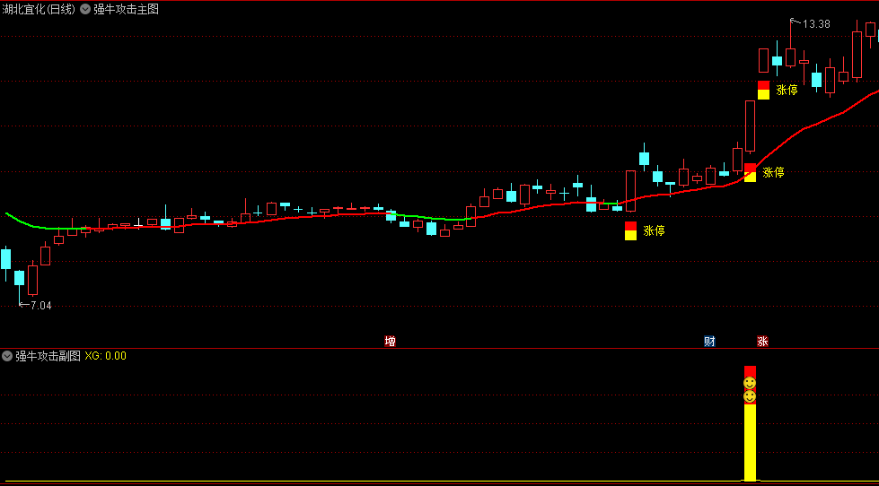 〖强牛攻击〗主图/副图/选股指标 配合强牛攻击信号 能够快速找到市场最强涨停板 通达信 源码