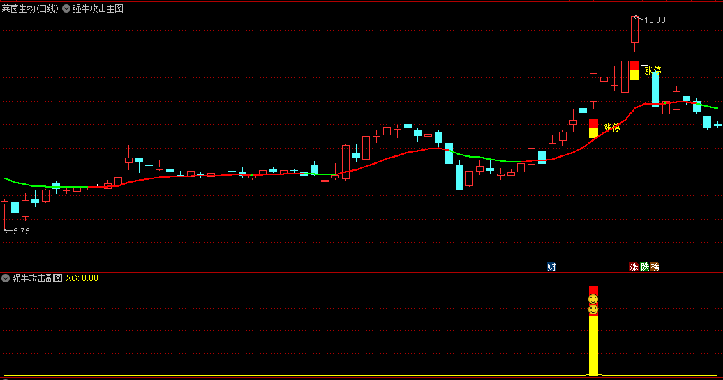 2、对于喜欢打板金钻指标的朋友来说,配合强牛攻击信号,能够快速找到市场中最强的涨停板;