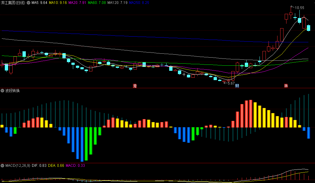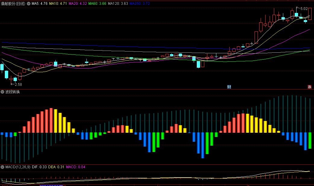 〖波段转换〗副图指标 绿柱转红柱关注 黄柱出现逃顶 无未来 通达信 源码