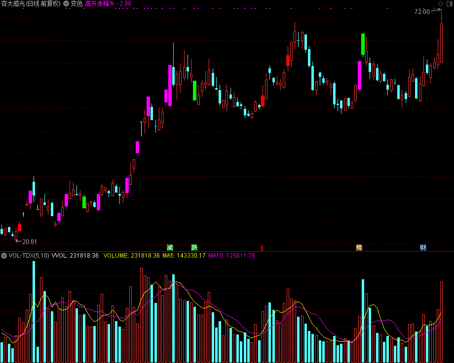 {涨停K线变色,科创板20%变色}