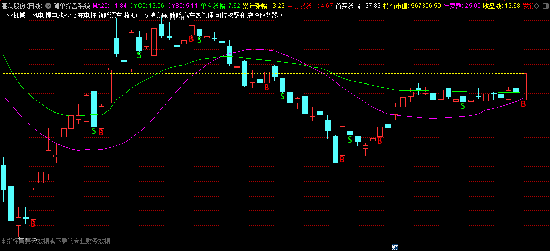 这个系统就是本人最近发的贴最优改进版。主图有买卖点提示,按买卖点操作盈亏状况全部真实展示,与专家系统回测数据一样,数据按去年同期到现在,方便决策。比如回测显示大亏的个股不碰,最近连续两次盈利可以关注等。本贴只是个人学写代码作业展示,代表此阶段本人最高水平,不求大量传播,与有缘人共享。