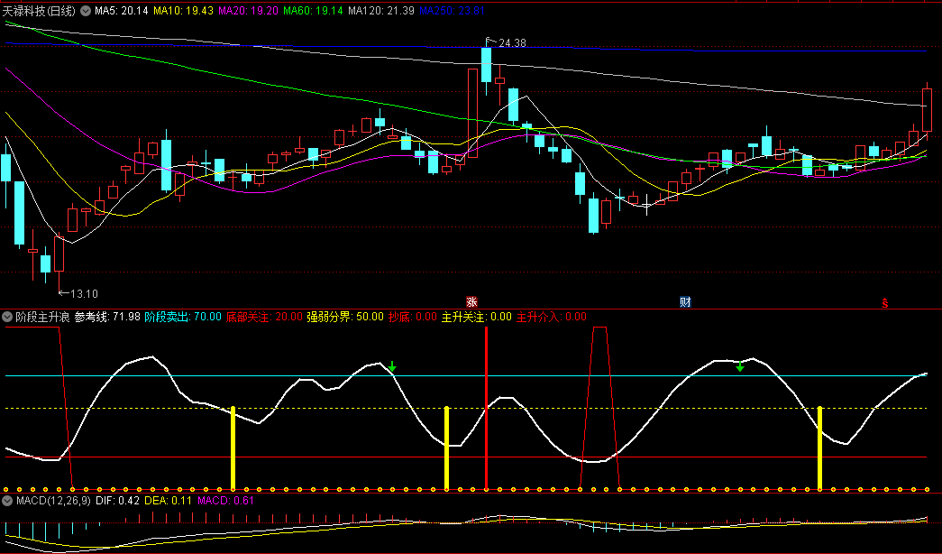 【庄股启动】主图+【庄股效应】副图+【庄主主升浪】副图+【庄股日月共振】副图指标,看盘利器,专捉主升浪!