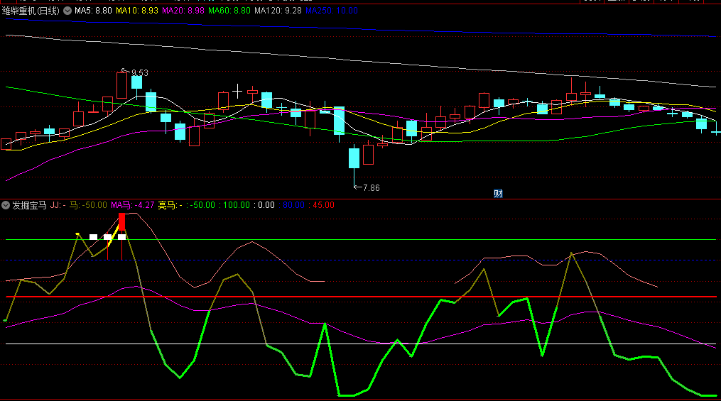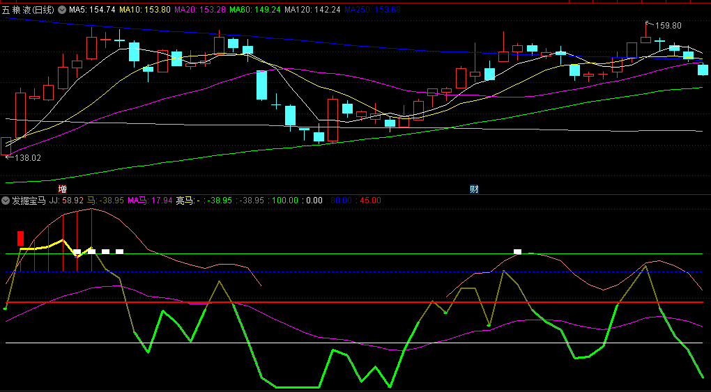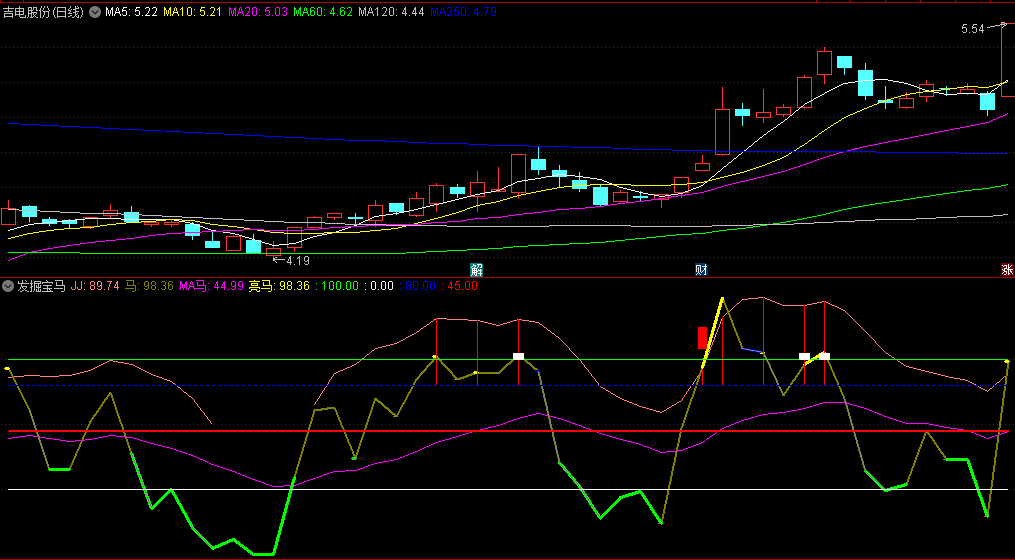 〖发掘宝马〗副图指标 jj值在80值之上往上走 说明进入短期强势 无未来 通达信 源码