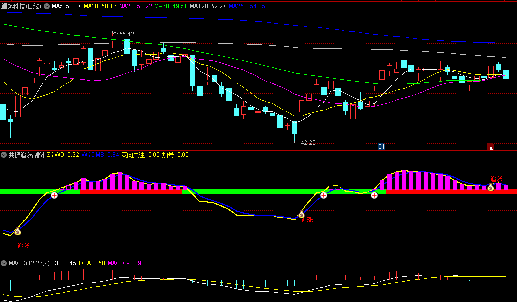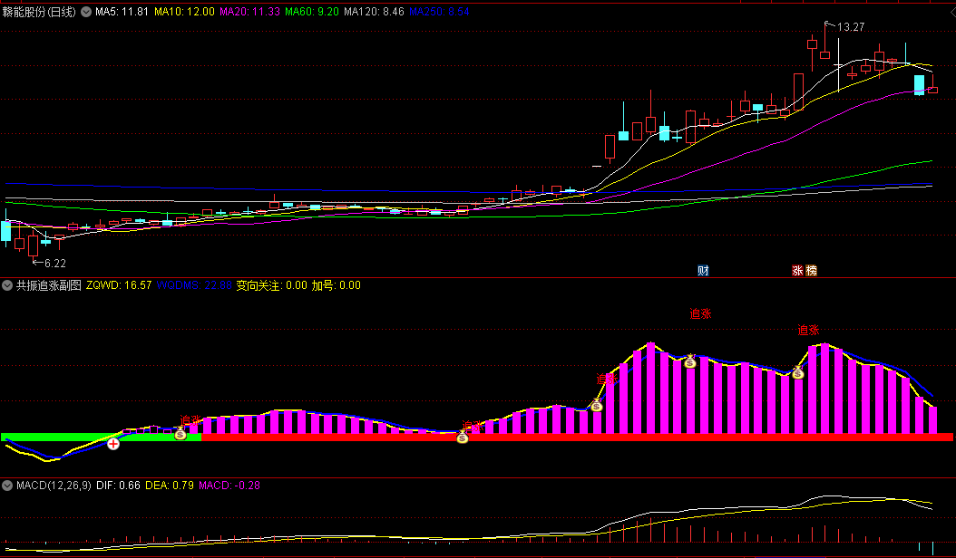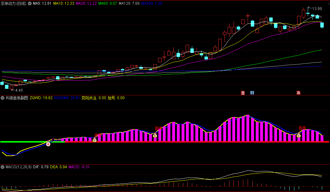 紫色柱子:当副图中出现紫色柱子时,表示个股已经进入强势区域。此时,投资者可以重点关注该股票,以寻找合适的买入机会。