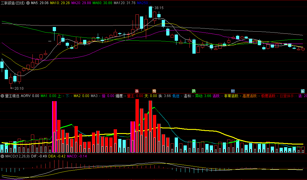 6.活跃:描述 个股 换手率情况,异动、活跃、高度活跃,比较好。(适合小盘股)