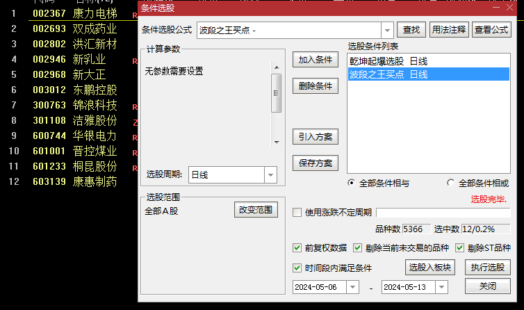 实战应用:通过多空线和大黑马等信号择机入场。