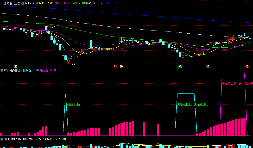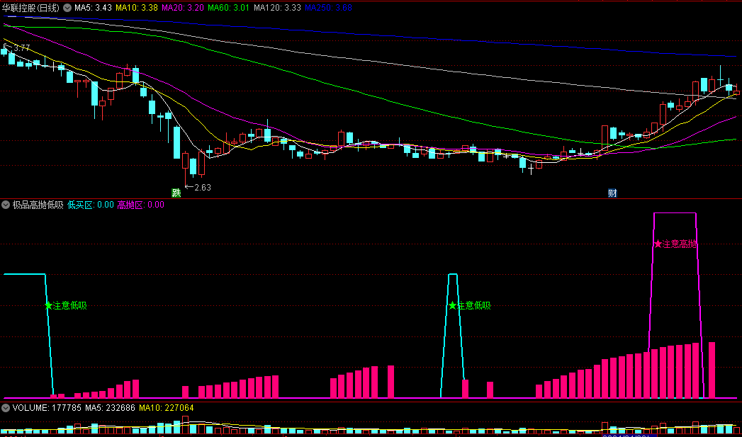 绿色:当副图指标中出现绿色标识时,这通常表示当前是一个“低吸”的时机,即投资者可以考虑在此时买入股票。这是因为绿色往往代表价格或指标的下跌趋势可能已经接近底部,市场可能出现反转的机会。