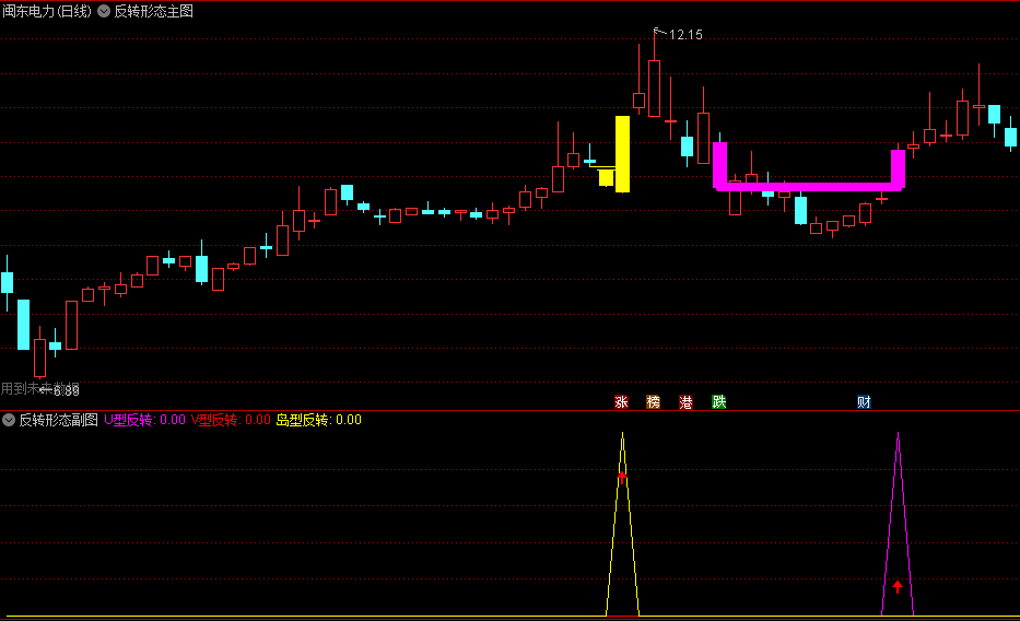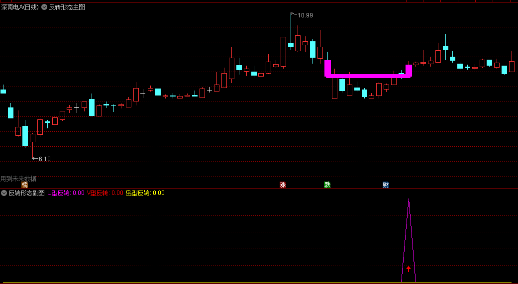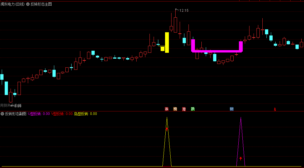 上次发了一个浅V形态指标,大家对K线形态有了一点兴趣,也想继续学习和研究一下。这里推荐三个常见的K线反转形态:V形反转、U形反转和岛形反转,其实是一个指标,这个指标不仅标注了V形反转、U形反转和岛形反转的位置,而且,用不同的颜色画了图、标了买点。