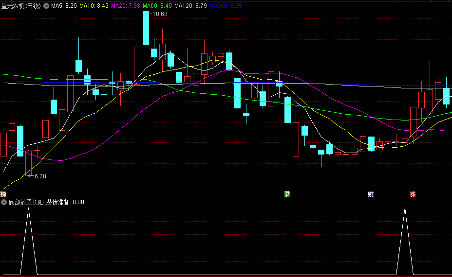 再者,放量长阳强势突破底部,往往意味着主力已经完成建仓,并开始进入拉升洗盘的过程。在这个过程中,主力会利用资金优势和资源优势,通过拉升股价来吸引跟风盘,并通过洗盘来清洗浮筹,提高市场的整体持股成本。这种拉升洗盘的过程,不仅有助于主力更好地控制市场节奏,也为投资者提供了低位买入的机会。