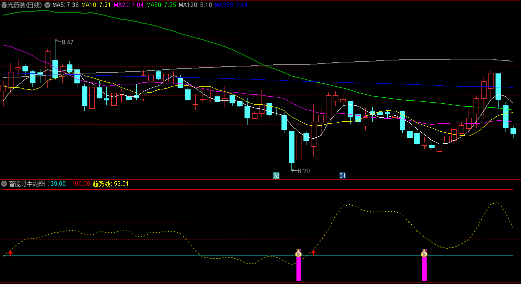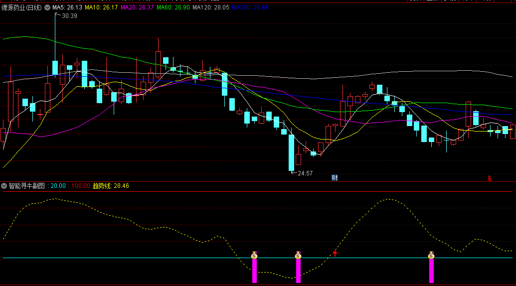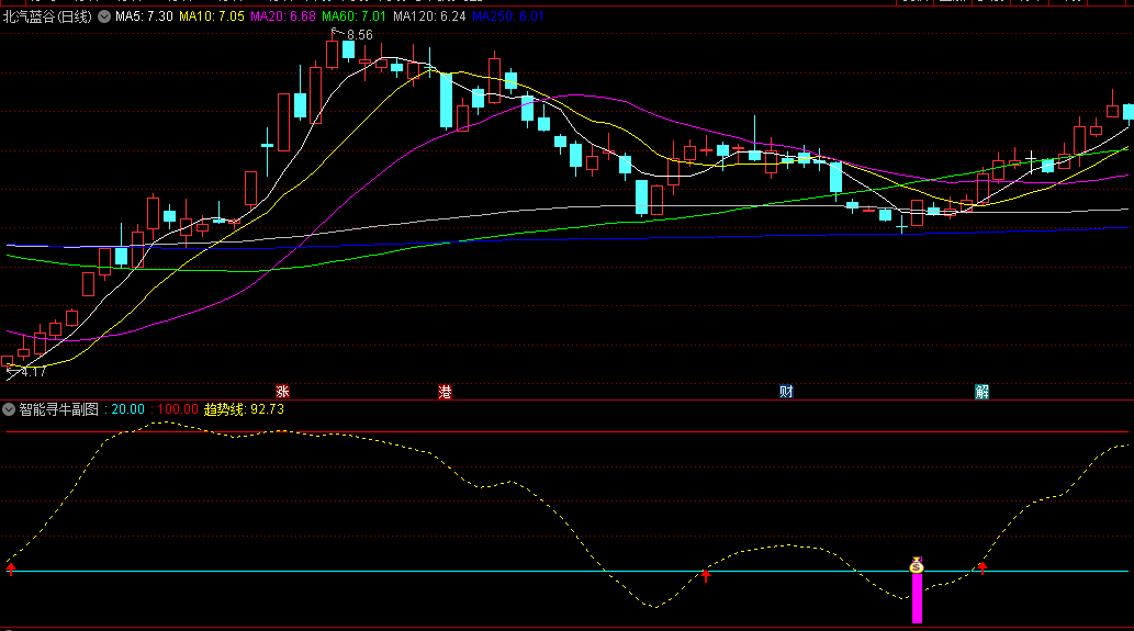〖智能寻牛〗副图/选股指标 选择波段低点 然后坐等上涨 通达信 源码