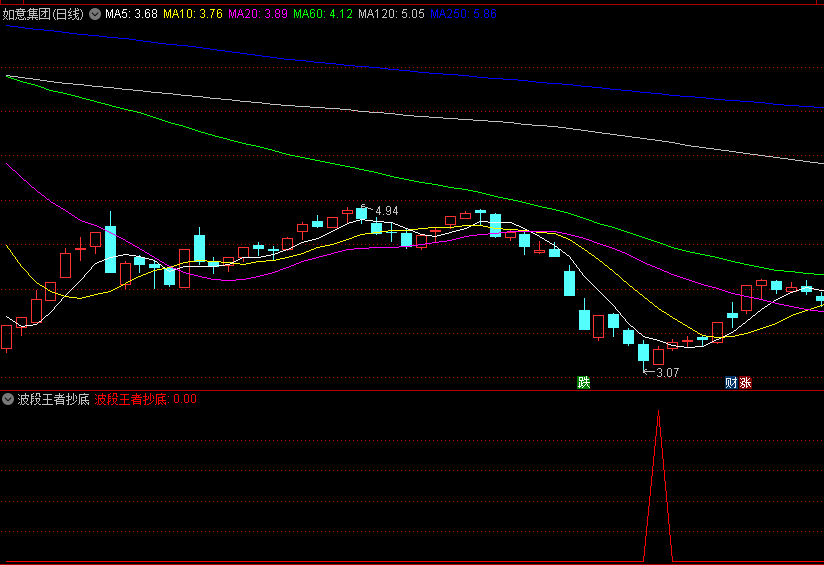 信号形式:波段王者抄底副图指标以红色的三角标志作为买入信号,直观且易于识别。