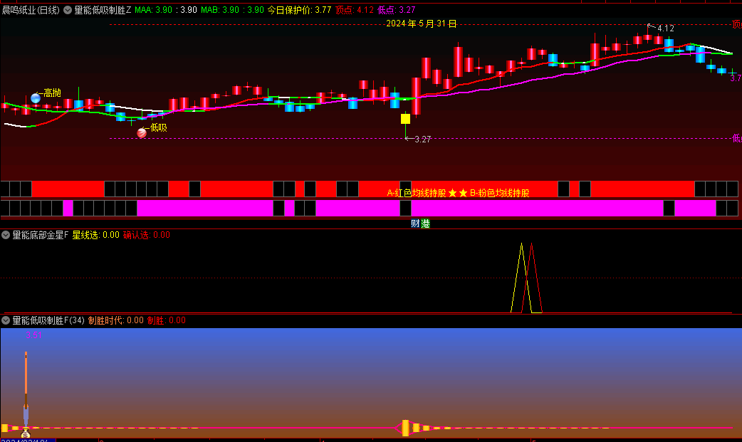 均线强弱提示:利用紫红柱子做标记,展示均线的强弱状态。红色均线表示强势,粉色均线表示相对较弱但仍有持股价值,为投资者提供关于市场趋势的参考信息。